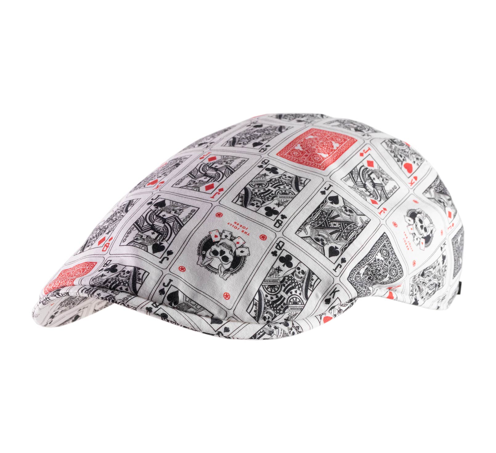 Ivy cap adorned by patterns recalling a deck of cards. Its classic elegance is then distinguished through that playful original touch. The carefully printed motifs also bring casualness.