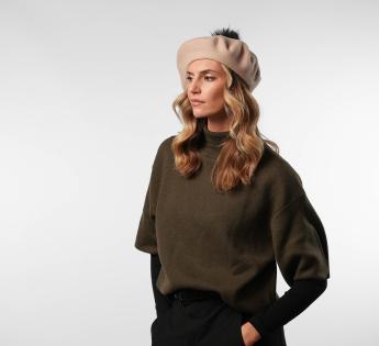 Wool fibers can bend 20,000 times without breaking and stretch by 30% without alteration. Thus, the beret retains its exceptional drape even after years