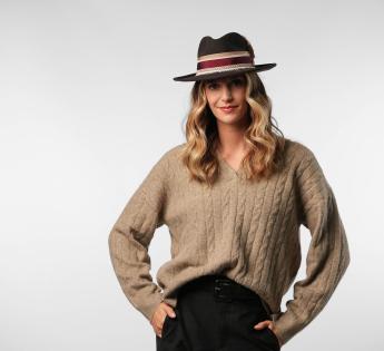 Romanticism and bohemian spirit unite in this Fedora Hat crafted in our Lyon workshop. A subtle play of textures and materials: grosgrain braid, lace, frayed ribbon... Each element enriches the silhouette without overwhelming it. The floral motif printed on the brim adds a poetic, almost vintage touch.