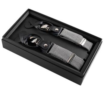 The finishes are top-notch: mixed attachments (metal clips and leather tabs), sturdy stitching, and presentation in an elegant box. The graphic design of the fabric adds a touch of discreet sophistication, ideal on a plain shirt. An accessory with a strong personality, designed to last, that fits perfectly in both an office wardrobe and for a special occasion.