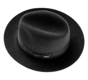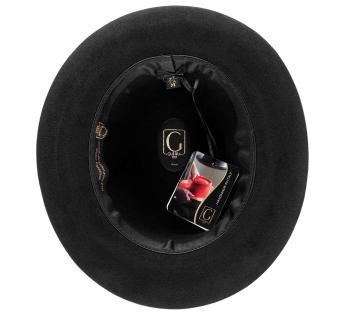 Handcrafted in Italy, this felt hat embodies the pinnacle of refined elegance. Its brushed felt reveals a velvety finish that catches the light and highlights its delicate features. Adorned with a wide grosgrain ribbon tied in a classic knot, the hat is accented with a Guerra 1855 signature plaque, a testament to unparalleled artisanal craftsmanship.