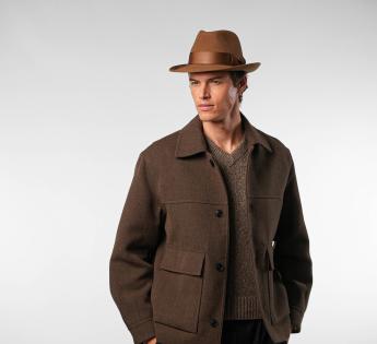 The timeless Fedora shape is enhanced by a moldable raw cut brim, which can be worn down or up, depending on the desired style. A hat that is both refined, technical, and versatile, designed for those who seek elegance without compromise.