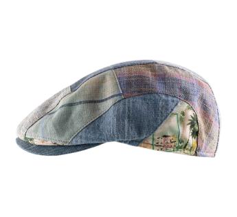 This linen patchwork cap catches the eye with its interplay of textures, shades, and reliefs. Each panel creates a unique piece, imbued with the vibrant charm of artisanal assembly.