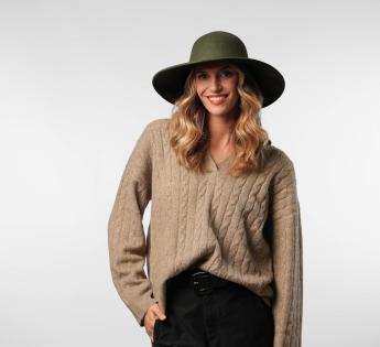 Simplicity and elegance define this Floppy Hat in felted wool, with a minimalist design and no trimming. Its round crown and wide brim create a flowing silhouette full of grace. Made in Italy, it offers a beautiful structure while remaining flexible and pleasant to wear.