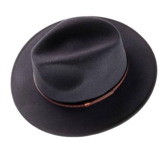 This traveller-shape hat offers optimal thermal comfort for a consistent and pleasant temperature all the time. Its matter is indeed felt that comes from very thin, warm and lightweight wool. It has a silky touch and its shape is adorned with an leather band engraved with geometrical patterns.