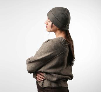 The beauty and softness of cashmere is especially evident when it makes up the fabric of this type of versatile and adjustable oversized beanie. Very practical, it will cover your head and even your ears. In a solid color and very lightweight, it is also breathable to release excess heat. By Kopka.