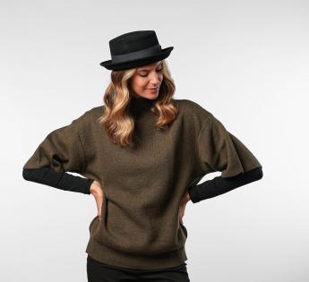 It can be worn in several ways: with a downturned brim for a sleek style, or with an upturned brim for a more daring look. Unisex and versatile, this hat suits both feminine and masculine wardrobes. Ideal for those seeking a statement headpiece, both elegant and decidedly modern.