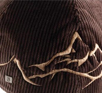 At the back, a stylized mountain landscape signs the piece with a strong gesture. This motif is embroidered in our Lyon workshop, with precision and attention to detail. The trapper inspiration takes a contemporary turn here, driven by the contrast between the graphic ornament and the velvety velvet. A cap designed for those who love understated pieces with real personality.