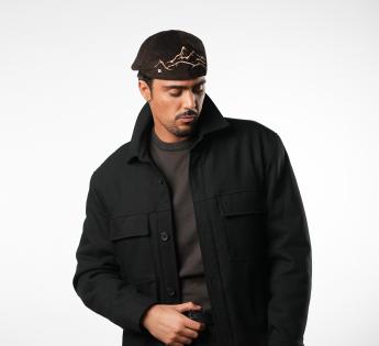 At the back, a stylized mountain landscape signs the piece with a strong gesture. This motif is embroidered in our Lyon workshop, with precision and attention to detail. The trapper inspiration takes a contemporary turn here, driven by the contrast between the graphic ornament and the velvety velvet. A cap designed for those who love understated pieces with real personality.