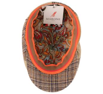 Model of ivy cap with its six panels cut from fine weight wool, which makes it a perfect headgear for the summer. Indeed, it will allow our head to keep some freshness along enjoying great breathability and a pleasant comfort. Its dress is made classic through herringbone and square motifs to accompany several kinds of outfits.