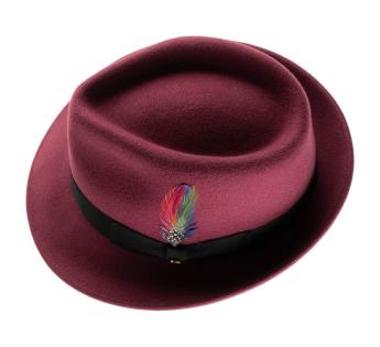 The classic trilby is charming and timeless. The flat top, surrounded by a wide brim, lends it a hint of sportiness. Deep pleats give the design an exciting edge.