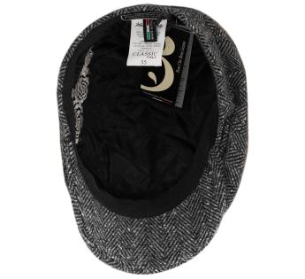 Crafted in wool tweed, this creation features an enduring herringbone pattern, enhanced by stylized floral embroidery. Its cabillou replaces the traditional button, adding a touch of distinction to its profile.