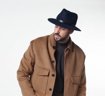 Sombrero de alta gama en una forma traveller realizado a mano en Italia. Moldeado con fieltro, su copa en forma de gota de agua es decorada por una cinta de cuero y a través un degradado de colores. Su banda de confort es también hecha de cuero y viene acabar un modelo sofisticado y elegante al mismo tiempo.