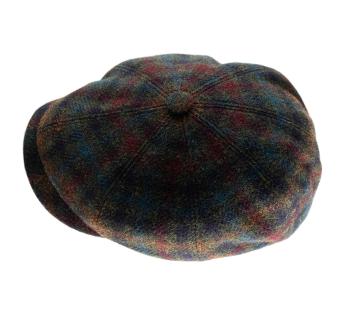 This 8-panel cap strikes a beautiful balance between British tradition and modern flair. Its round and generous shape, highlighted by a small central button, gives it an iconic silhouette, reinterpreted here in a textured wool with subtle reflections. The mellow fabric reveals a discreet checked pattern in a range of deep and natural shades, both timeless and contemporary.