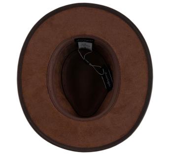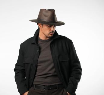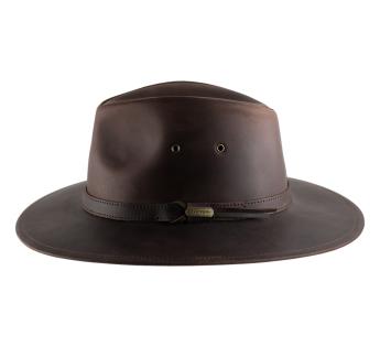 Adventure and character are on the agenda with this Outback Hat made from buffalo leather by Aurega. Its structured silhouette and naturally patinated leather reveal a bold and timeless style. Relatively rigid, it maintains a straight brim while retaining a slight natural flexibility that moves without deforming. Its wide brim offers effective protection against the elements, and its high crown elegantly elongates the face line.