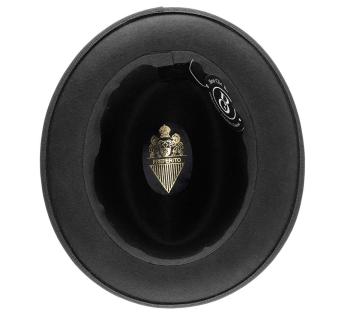 Crafted from naturally water resistant felted wool, this model features classic lines, enhanced by a sophisticated black ribbon. Its traditional shape, both bold and refined, pays homage to the European millinery art.