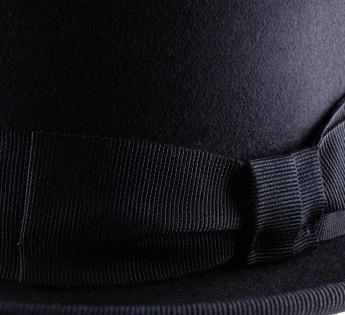 Crafted from naturally water resistant felted wool, this model features classic lines, enhanced by a sophisticated black ribbon. Its traditional shape, both bold and refined, pays homage to the European millinery art.