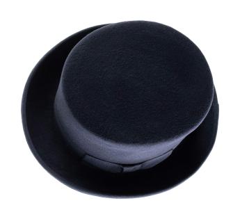 This top hat in hardened wool felt embodies elegance in its purest form. Its deliberately accentuated high crown creates a majestic vertical line, a signature of grand ceremonial silhouettes. The rigid felt, meticulously crafted, ensures impeccable hold and a refined finish.