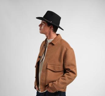 Molded in Italy, then crafted in France, it combines a wool felt with shape memory and a leather chin strap, passing through subtly embedded eyelets. Ideal for nature getaways or travels, its long brim and teardrop crown add a touch of sophistication to any adventure.