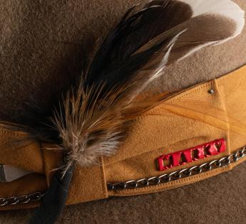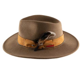 The association of matters is one of the trends this season. See it yourself with this well-thought felt-suede combination. The result is a classic headgear lifted with a braid of a cheerful natural color which successfully displays topstiches, fancy and a feather. So we are enjoying a creation to which it has been added a nice touch of radiance.
