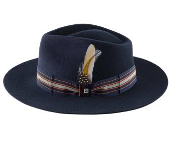The Fedora is here bespoke and made of a waterproofed woolen material. By accompanying our winter outfits, it grants us serenity through its efficient and reinforced protection. Its brims are flat and surround a teardrop crown, creating a beautiful work.