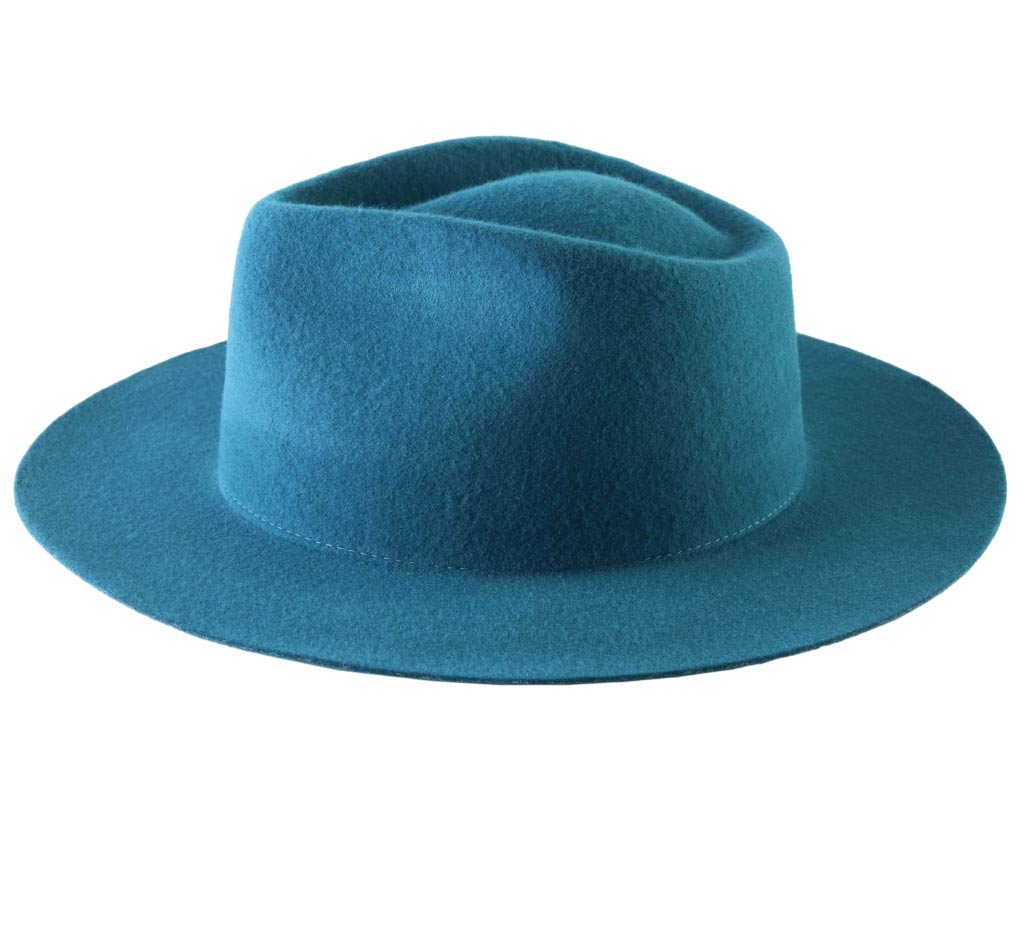 The Fedora is here bespoke and made of a waterproofed woolen material. By accompanying our winter outfits, it grants us serenity through its efficient and reinforced protection. Its brims are flat and surround a teardrop crown, creating a beautiful work.