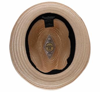 • Shaped in Italy. Artisanally crafted from a plait of sewn straw, brim to brim, on a turntable, before being hot-shaped (pressed on a mould).