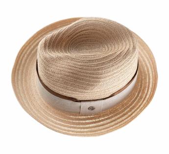 This Player Hat in abaca captivates with its lightweight, breathable, flexible, and durable material—perfect for the season. Its understated trimming combines linen with a chocolate-toned, aged leather-look braid, bringing just the right touch of warmth to this refined and elegant ensemble.