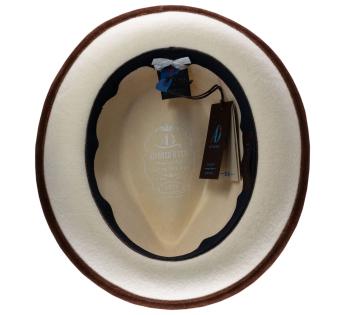 Another creation from Alfonso D'Este. The milliner has decided to mark its beautiful dress with a few voluntary stains. You will then no longer fear to get a white hat that shows every little mark. Enjoy also its chic and casual nature as it is a Trilby, perfectly adaptable to your mood.
