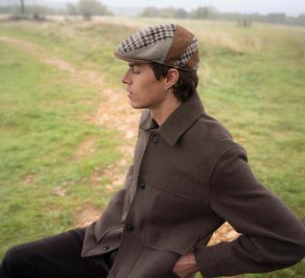 With its reimagined houndstooth pattern and panels of varied textures, this Flat cap stands out with its vintage, refined, and original style. The combination of materials gives it a unique charm and a sophisticated look.