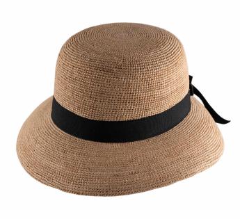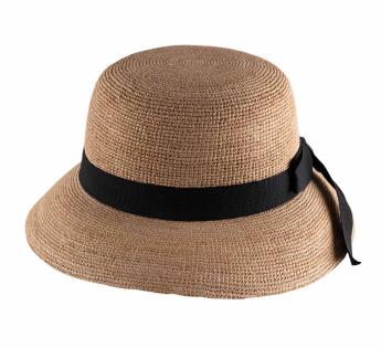 A retro nod for those who love a delicate look... with a touch of character. A charm from another time breathes through this Cloche Hat made of raffia, hand-crocheted with traditional craftsmanship. Its fine and supple weave naturally fits the shape of the head, while its black ribbon adds a simple and elegant silhouette. Lightweight and crushable, it accompanies you both in the city and by the seaside.