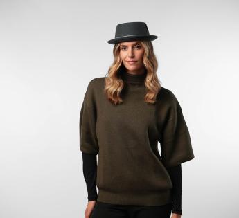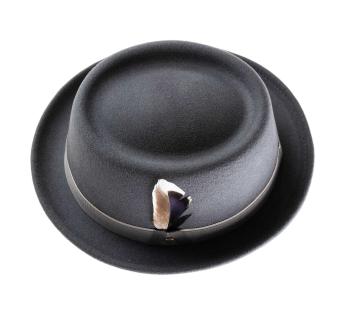 Pork Pie Hat in Australian sheep wool, both elegant and functional. Its flat crown and upturned brim create a sharp, urban silhouette, ideal for subtly structuring an outfit. Designed in naturally water-repellent and flexible wool, it withstands the challenges of daily life while ensuring comfort and support.