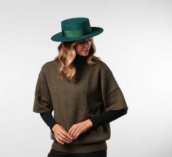 Crafted in Italy from high-quality wool felt, it is adorned with a braid made in France, the result of a partnership between artisans from both countries. This dialogue of craftsmanship gives birth to a piece that combines tradition and boldness, in a style that is both minimalist and expressive. A touch of Andalusian, a touch of couture, this hat transcends eras without ever losing its allure.