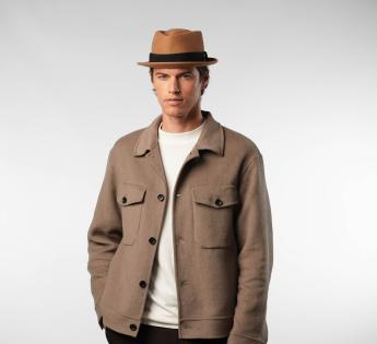 Crafted in wool felt, it offers structure, comfort, and perfect hold. Its typical flat crown and upturned brim shape assert a modern look, while remaining accessible and easy to wear. A hat with a strong character, designed for those who love to assert their style without overdoing it.