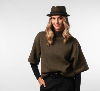 Crafted in wool felt, it offers structure, comfort, and perfect hold. Its typical flat crown and upturned brim shape assert a modern look, while remaining accessible and easy to wear. A hat with a strong character, designed for those who love to assert their style without overdoing it.