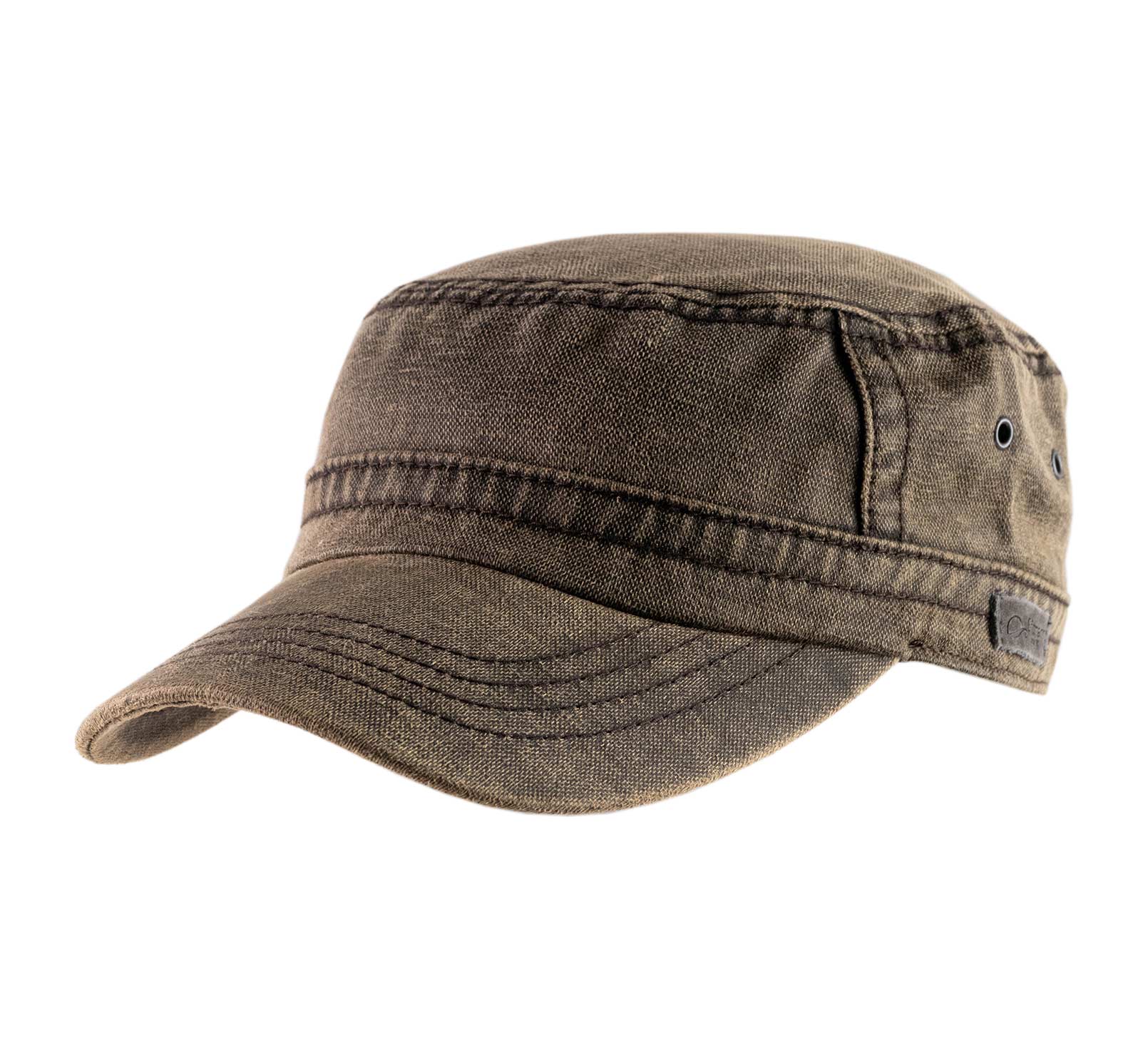 Waxed canvas cadet cap. It's made with a fabric that comprises a high content of cotton. Its characteristic crown has breathing eyelets.