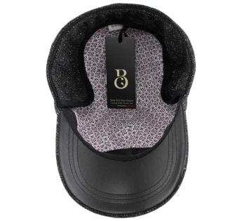 Its brim plays on contrasts with an underside in faux leather, adding a subtle interplay of materials. Foldable ear flaps lined with fleece enhance protection against the cold.