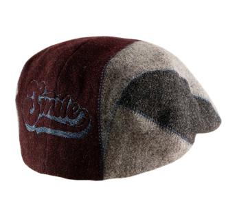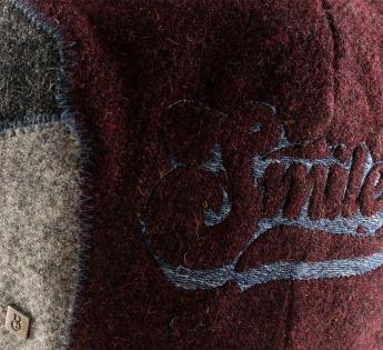 A patchwork of materials and style: this Flat cap in virgin Shetland wool offers a fitted and dynamic cut, enhanced by a play of contrasting panels subtly highlighted by visible topstitching. At the back, an embroidered 'Smile' adds a strong graphic touch, crafted on demand in our Lyon workshop.