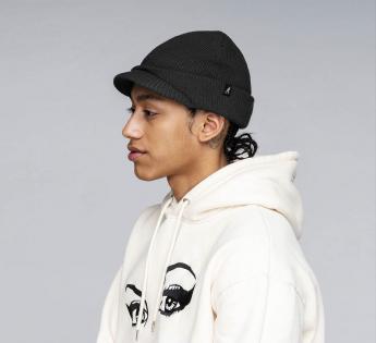 The peaked beanie is also a modern accessory. It ideally adjusts the head and its protective visor reminds us of the baseball cap. For enjoying a sports look.