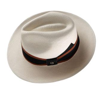 This Panama Hat Montecristi stands out with its grosgrain ribbon, refined in timeless shades, whose layered construction brings a subtle depth. The asymmetrical detail extending at the back infuses a modern dynamism into this classic silhouette, signed with a brushed silver badge.