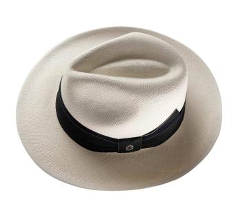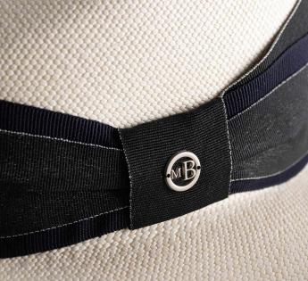 This Montecristi Panama Hat stands out with its grosgrain ribbon, refined in timeless hues, whose layered construction adds subtle depth. The asymmetrical detail extending at the back infuses a modern dynamism into this classic silhouette, signed with a brushed silver badge.