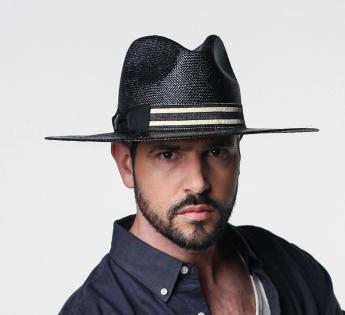 Borsalino panama woven with black-tinted straw. However, its surface is varnished to make a very reflective effect. Exposed to the light, it offers a very contrasting rendering. On the other hand, its tint can change and lighten after prolonged exposure to the sun; making the model more unique.