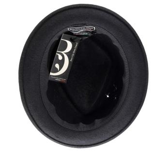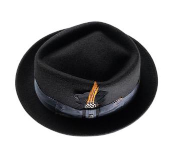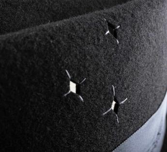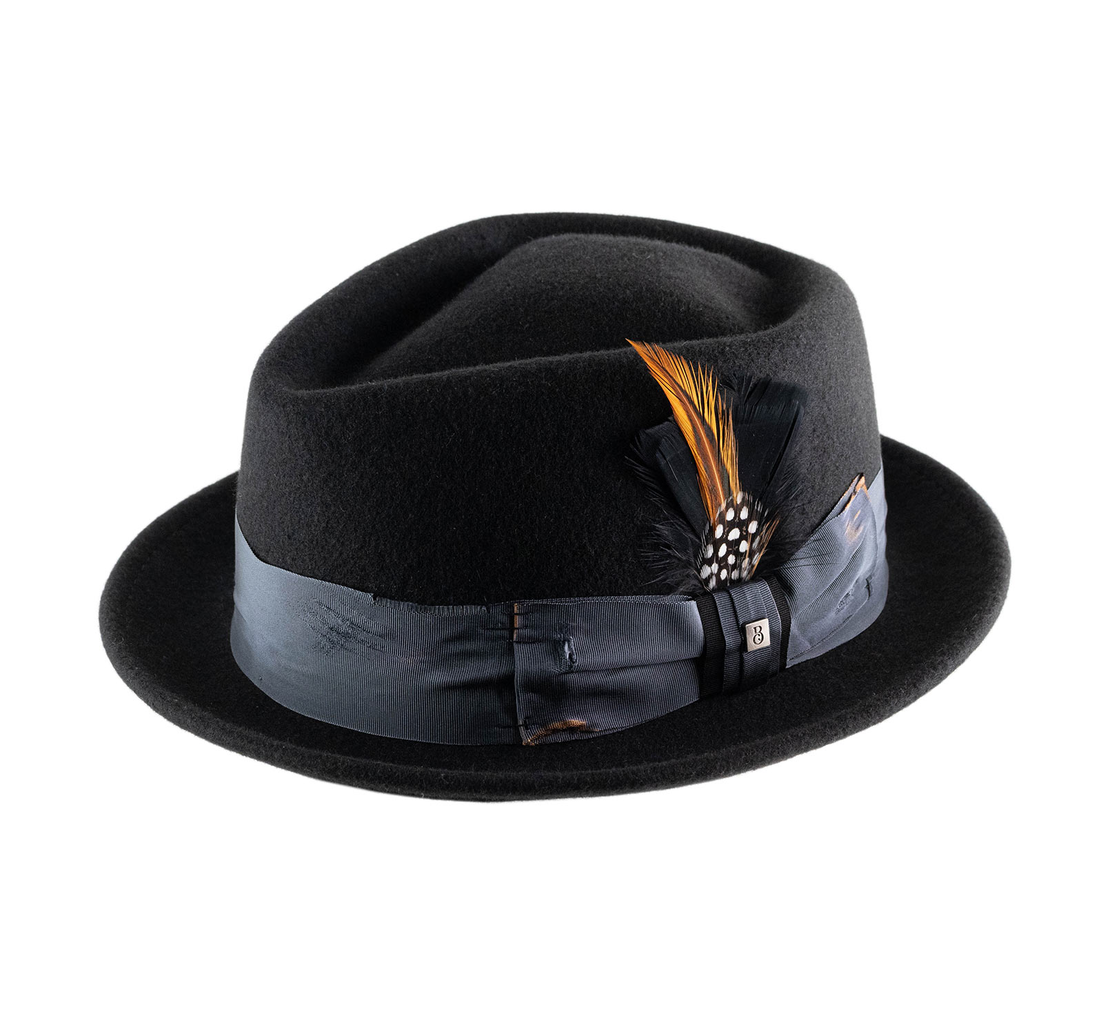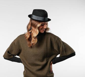 This porkpie reinterprets the codes of the classic with a touch of boldness. Crafted from a beautifully dense wool felt, it reveals a deliberately patinated look, almost cinematic.