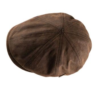 Vintage allure and adventurer spirit for this 8-panel Flat cap by Aurega. Crafted from waxed cotton with a glossy finish that mimics aged leather, it naturally resists moisture while maintaining a beautiful suppleness. Its tailored cut ensures a good fit and elegantly highlights the facial line. A great choice to assert one's style with discretion.
