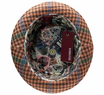 Of a soft and supple leather, the pork pie hat is here adding an optimal comfort to a distinguished shape despite its sobriety. It is beside personalized thanks to a vintage tint which joins the printed lining inside. This hat revisited in Italy will be a beautiful ally for keeping you warm this season.