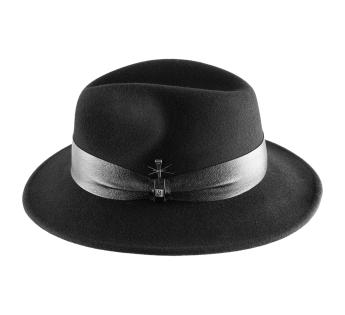 This exceptional Outback Hat, crafted in our Lyon workshops, embodies the elegance and craftsmanship of the Prestige Collection. Made from pure wool, it offers luxurious comfort and a confident look. Its grained faux leather braid, enhanced with a silver-thread embroidered stud and subtly echoed on the other side of the hat, adds a unique touch of refinement.