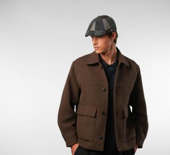 Assertive style and controlled comfort. This flat cap duckbill captivates with its patchwork of textures in deep hues, subtly contrasted. Its fitted cut with a prominent brim structures the silhouette for an urban yet elegant look. The blend of noble materials reveals a refined touch and impeccable drape.