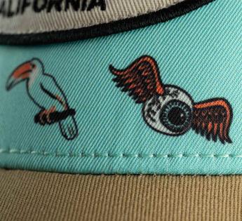 This cap instantly conjures up sunny days, the beach, outdoor adventures, and that golden evening light. Its patterns create a true cocktail of Californian vibes, infusing your look with a free-spirited, radiant, and unmistakably summery attitude.