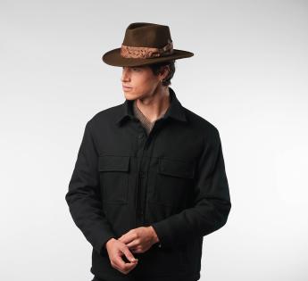 A perfect blend of elegance and character, this Outback Hat is crafted in our Lyon workshop with great artisanal care. It stands out with a braid matching the felt's hue, adorned with delicate arabesque patterns. Slightly shiny in places, with a subtle velvet effect, it captures the light and enriches the hat's silhouette.