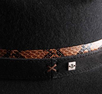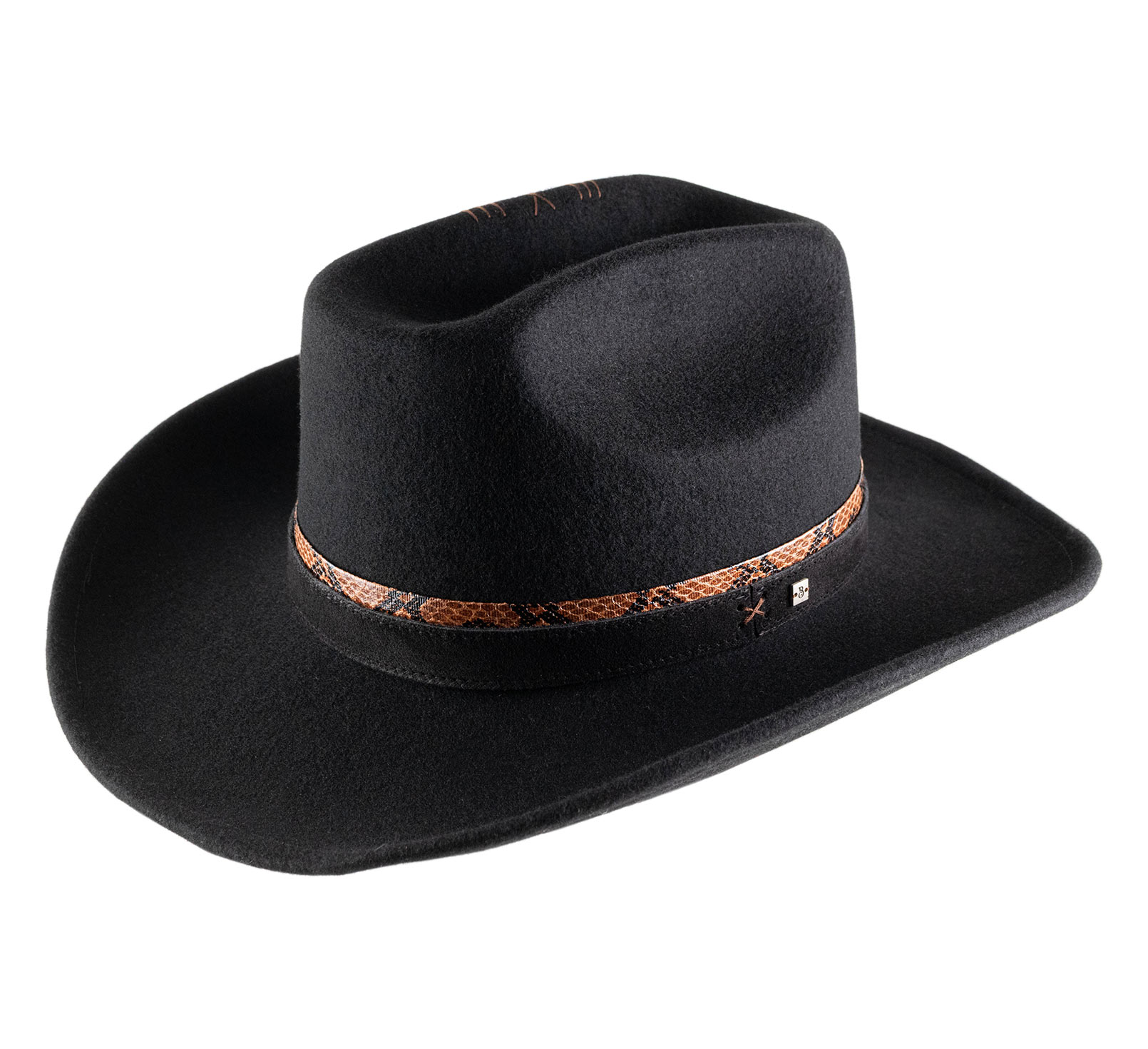 The snake-effect trimming, accented with a metallic Label, marks a bold style, straddling the line between rustic and refined. This model is inspired by the legends of the West while maintaining a distinctly French elegance. A hat of character, ready to forge its path between artisanal tradition and adventurous spirit.
